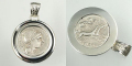 世界で一つ!古代ローマのデナリウス銀貨を使った、貴重な古代コインペンダント。ペンダント枠はブルガリ風、シルバーで両面から貴重なローマコインを包み込んであります。枠の周りにはダークブルーの線をエナメル加工しています。コイン本体には一切手を加えておりません!