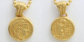 古代ギリシャの都市国家アテネで造られた銀貨を基に、純銀製のレプリカコインネックレスを作成しました。全体には金メッキを施しています。