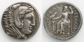 表面にはライオンの毛皮を被り、英雄ヘラクレスに扮したアレキサンダー大王(アレクサンドロス3世 在位:BC336年~BC323年)の肖像が打ち出されています。生前のアレキサンダー大王は自らを「ヘラクレスの末裔」と称していたと云われ、コイン上には自分自身と神話上の英雄を重ね合わせたイメージを表現させたとされます。
