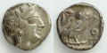 表面には、アッティカ式兜を被った守護女神アテネの横顔像が打ち出されています。兜に巻かれたオリーヴの枝葉はアテネの富を象徴します。また、この兜はペルシア戦争に勝利したことを示すものという説もあります。