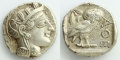 アテナ神が被る兜の装飾羽がしっかりと打ち出されている他、女神の優しげな表情が表された素晴らしい造型です。裏面のフクロウとオリーヴ、三日月と「ΑΘΕ」銘も欠けることなく全て打ち出されており、コレクションとして収蔵されるには申し分ない状態です。