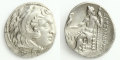 表面には獅子の毛皮を被り、神話上の英雄ヘラクレスに扮したアレキサンダー大王(アレクサンドロス3世)の横顔肖像が打ち出されています。