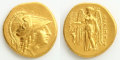 アレキサンダー大王(アレクサンドロス3世 在位:BC336年~BC323年)によって発行されたこのタイプのスターテル金貨は、大王による東方遠征の際、戦功をあげた部下に下賜するための軍資金として用いられました。その後ペルシアを征服した際に大量の金を戦利品として得、各都市でこの金貨を造らせたのです。大王亡き後、帝国が部下達によって分割された後もこのスターテル金貨は各都市で造られ続けました。