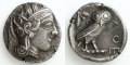 裏面には、アテナ神の聖鳥であるフクロウ(コキンメフクロウ)の全身像が表現されています。