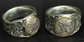 本物の古代ギリシャコインを使用した、本格的アンティークコインリング。リング部分はシルバーですがコイン本体の周囲は細いK18枠で囲い、金と銀のコントラストでコインの存在感を高めています。このコインが作られたのは今からおよそ2300年前、エーゲ海に面した古代都市ランプサコスです。海に面した古代都市というイメージから、リングの部分はゴツゴツとした岩肌のような感触にしています。世界に一点限りのこだわりコインジュエリーです。