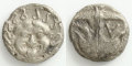 TOPアンティークコイン 古代ギリシャ SoldOut ゴルゴン/錨と海老 価格: ¥0 (税込) 販売期間: 数量: 個 在庫: × 在庫 × 商品番号:226339 発行国:古代ギリシャ 地方名:トラキア 都 市:アポロニア・ポンティカ 発行年:BC450-BC400 額 面:ドラクマ 金 性:AR (Silver) 表図柄:ゴルゴン 裏図柄:錨&海老 サイズ:13.8mm 重 量:3.16g 資 料:Sear1655var 状 態:VF- 舌を出して威嚇するゴルゴン(メデューサ)の周囲には蛇でできた髪の毛が配されている。見るものを石化する怪物ゴルゴンの姿は魔除けとされ、コインや鎧などに多く表現されていた。