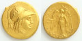 金貨の表面には、知恵と戦術を司る女神アテナの肖像が打ち出されています。その頭部には羽飾りがついたコリント式兜を被っており、軍神の姿で表現されています。