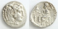紀元前4世紀末、アレキサンダー大王(アレクサンドロス3世)在世中の古代マケドニア王国で発行されたドラクマ銀貨。小アジアの北西部に存在した古代都市ランプサコスで造られました。当時のドラクマ銀貨は歩兵の一日分の給与に相当する価値とされていました。