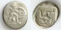 小アジア南部パンフィリア地方の都市アスペンドスで発行されたスターテル銀貨。走る兵士の姿は古代オリンピックにおける徒競走者、またはトロイ戦争に登場する俊足の戦士アイアースを表現したものとされる。兵士の足の間には、俊足とは真逆の小さな亀が配されている。