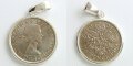 「幸せを呼ぶコイン」6ペンスを使用したコインペンダントトップ。周囲部にはシルバー製のペンダント枠を伏せ込み加工しております。