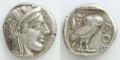 紀元前5世紀後半、アッティカ地方の古代都市国家 アテネ(アテナイ)で発行されたテトラドラクマ銀貨。4ドラクマに相当したこの銀貨は、アテネの繁栄を象徴するコインとして広く知られています。主に交易での決済通貨として広く用いられ、エーゲ海域だけでなく小アジアやフェニキア、エジプト、遠くアラビア半島の南部にまで流通しました。