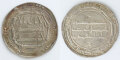 表面にはイスラーム教の信仰告白を示す「アラーの他に神はなし」という文言が刻まれ、周囲部には「尊きアラーの御名において、160年にアル=ムハンマディヤにて造られたディルハム」を意味するアラビア文字銘が刻まれています。「160年」はイスラームのヒジュラ暦であり、西暦では776年~777年にあたります。