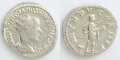ゴルディアヌス3世(在位:AD238-AD244)の治世末、ローマ市内で製造されたアントニニアヌス銀貨。アントニニアヌス銀貨は名目上、デナリウス銀貨2枚の価値に相当するとされた。