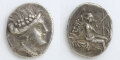 表面には都市名の由来になったと云われるニンフ(妖精) ヒスティアイアの横顔像が打ち出されています。頭部はエウボイア島の主要産品のひとつである葡萄で飾られています。