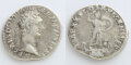 表面にはローマ皇帝 ドミティアヌス(在位:AD81-AD96)の横顔肖像が打ち出されています。周囲部には「IMP CAES DOMIT AVG GERM P M TR P XI (=最高司令官 ドミティアヌス皇帝 ゲルマニア征服将軍 大神祇官 護民官特権の保持十一回)」銘が配されています。