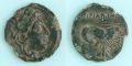 表面には月桂冠を戴くアポロ神(アポロン)の横顔像が打ち出されています。月桂樹はアポロ神の聖樹とされ、様々なコインに表現されたアポロ神はほぼ月桂冠を戴いています。