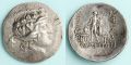 BC148年以降に北部ギリシャ・トラキア地方のマロネイアで鋳造されたコイン。表面にはゼウスと人間の女セメレの子、ディオニソス(バッカス)の横顔が刻印されている。 葡萄酒を発明してお酒の神として有名。又、当時女性の間に人気が有った信仰宗教(踊り狂う新興宗教)の開祖。裏面にはブドウと杖を持つ立ち姿が刻まれている。