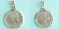 マン島はイギリスの領内にある小さな島ですが、女王エリザベス2世を領主として戴く独立した島であり、イギリス政府の管轄下には入っていません。独自の政府を持ち、通貨もマン島ポンドを発行しています。小さなマン島で発行された小さなコインを、シルバー枠を巻いたペンダントに仕上げました。