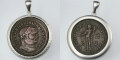 古代ローマ帝国で使用されていた本物のコインをペンダントに加工しました。周囲部はシルバー製の枠によって守られています。