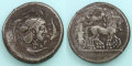 シュラクサイ(シラクサ)で造られました。シチリア島の中でも比較的初期に造られた本格的な銀貨です。