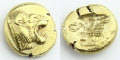 エーゲ海のレスボス島で造られた極小のヘクテ貨は、「エレクトラム」と呼ばれる金と銀の自然合金によって造られています。レスボス島は小アジア(現在のトルコ)に地理的に近く、コイン造幣の技術や文化も、他のギリシャ諸都市に先駆けて伝播した地と考えられています。