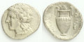 ディオニソスは快楽を司る葡萄酒の神。裏面に表現されたアンフォーラ(壺)は、ワインを入れておく為のものである。