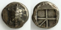 アイギナ島で発行されたスターテル銀貨。盛り上がった甲羅を持つリアルな亀が特徴的。