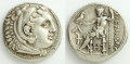 アレキサンダー大王(マケドニア王 アレクサンドロス3世 在位:BC336年~BC323年)の横顔像が打ち出されています。アレキサンダー大王はヘラクレスに強い憧れを抱き、また自らの一族を「ヘラクレスの末裔」と称していました。そのため、彼はライオンの毛皮を被ったヘラクレスに重ねたイメージで表現されます。
