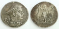 ヘレニズム時代に栄えたギリシャ系王朝の一つ、グレコ=バクトリア王国で発行されたテトラドラクマ銀貨。表面には王の肖像、裏面にはギリシャ神話の神が表現された、典型的なヘレニズムスタイルのコインです。