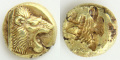 エーゲ海の東部に位置するレスボス島で発行されたヘクテ貨。レスボス島の中心都市ミティリーニ(ミュティレネ)では様々な種類のヘクテ貨が造られ、小さいながらもその多彩さと繊細さから専門の収集家も存在します。このコインは金と銀の自然合金「エレクトラム」によって造られており、およそ1/6スターテルの価値に相当したとされます。