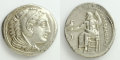 アレキサンダー大王(アレクサンドロス3世)治世下の古代マケドニア王国で発行されたテトラドラクマ銀貨。このコインは大王の治世末期、将軍アンティパトロスが統治していた古代都市アンフィポリスで造られました。