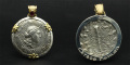 古代ギリシャで造られた大型銀貨を使用した、豪華な一点もののコインジュエリー。細部までこだわった贅沢な逸品です。