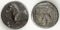トラキアのマロネイアで造られたトリオボル(3オボル)銀貨。トラキアの古代都市マロネイアはワイン用の葡萄の名産地として知られ、コイン上にも象徴的な葡萄が表現されている。