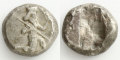このタイプのコインは、歴史上最初の「人間の姿を表現したコイン」とされるのです。初めて表現された人物像は横顔や正面像ではなく、動きのある全身像でした。
