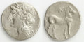裏面の馬はカルタゴ軍の騎馬軍団を示すデザインとされ、カルタゴで発行されたほぼ全ての種類のコインに表現されています。