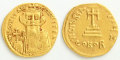 7世紀半ばのビザンチン(東ローマ)帝国で発行されたソリダス金貨。当時のソリダス金貨は、薄手ですがほぼ純金で造られており、品位や重さも一定していたことから交易用に多く用いられました。柔かい金を薄く打ち出している為、特に肖像などが磨耗しやすく、細部まで残されているものは希少です。
