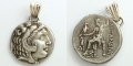 アレキサンダー大王(アレクサンドロス3世)のレプリカコインペンダント。大きさや重量を忠実に再現、シルバーで作成した、本格的なレプリカコインです。バチカンには「矢羽」のデザインを施しています。
