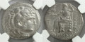 アレキサンダー大王(アレクサンドロス3世 在位:BC336年~BC323年)をモデルにしていると考えられています。 少年時代の大王はヘラクレスに強く憧れていたと云われ、自らを「ヘラクレスの末裔」と自称していました。その為、コイン上にはヘラクレスのイメージと重ね合わせた、自身の肖像を表現させたとみられています。