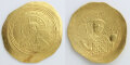 11世紀半ば、ビザンチン帝国(=東ローマ帝国)の首都コンスタンティノポリスで製造されたヒスタメノン・ノミスマ金貨。ヒスタメノン・ノミスマは「標準貨幣」を意味し、ソリダス金貨を発展させた金貨として発行されました。この時代に造られた金貨は