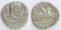 ジュノー(ユノー)女神像が打ち出されています。ジュノーはギリシャ神話のヘラに相当する女王神であり、大神ジュピター(ユーピテル)の正妻とされました。山羊の毛皮を被った姿は「ユノー・ソスピタ(=救済のジュノー)」と呼ばれ、古代ローマでは女性や子どもたちを守護する女神の姿とされていました。紀元前197年にユノー・ソスピタに捧げる神殿の建立が誓願され、3年後の紀元前194年にローマ市内のフォルム・ホリトリウムに建立されました。