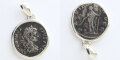 1800年前の古代ローマ帝国で発行されたデナリウス銀貨を使用したコインペンダント。歪な形状に合わせて丁寧にシルバー製の枠を巻きつけています。