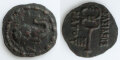 この銅貨には首に鈴を付けられたゾウが表現され、裏面にはカドゥケウス(*ギリシャ神話に登場する伝令神ヘルメスの杖)と、発行者マウエス王を示す「ΒΑΣΙΛΕΩΣ ΜΑΥΟΥ (=王たるマウエス)」銘が配されている。