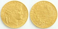 19世紀半ばのフランスで発行された20フラン金貨。表面に表現されているセレス(*またはケレス)は、豊穣をもたらす古代ローマの女神であり、古代ギリシャ神話のデメーテールに相当します。農業国フランスにふさわしいデザインであり、頭部には麦穂の冠を戴いています。