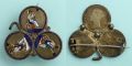 このコインブローチは4ペンス(グロート)銀貨を3枚組み合わせ、ひとつの作品に仕上げたアンティークジュエリーです。3枚それぞれのブリタニア女神像にエナメル彩色を施し、色鮮やかな女神像を再現しています。紺、朱、白の三色から成るコントラストは、ブリタニアの洗練されたイメージをより華やかに引き立てています。女神が手にする盾のユニオンジャックも細かく彩色され、100年以上昔の職人の工芸技術が窺えます。