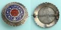 使用しているコインは1862年、英領時代のインドで発行された1ルピー銀貨です。コインの繊細な図柄を、鮮やかなエナメルで彩色し、存在感を際立たせています。内部の文字にまで色が入れられ、本来のコインには無い印象を演出しています。紺色の上に浮き立つ草花の紋様はそれぞれバラ(=イングランド)、アザミ(=スコットランド)、クローバー(=アイルランド)、ハス(=インド)を象徴し、大英帝国を示しています。