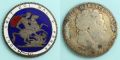 使用しているコインは1819年にイギリスで発行された1クラウン銀貨です。ジョージ3世肖像の左右部の痕跡から、ブローチとして使用されていたものと推察されます。