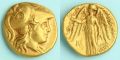 紀元前4世紀末、セレウコス朝シリアで発行されたスターテル金貨。この金貨はセレウコス1世ニカトール王(在位:BC321年~BC281年)の治世初期、メソポタミア地方の古代都市バビロンで造られました。
