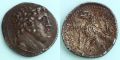 紀元前1世紀半ばのフェニキアで発行されたシェケル銀貨。発行都市ティール(ティルス)は、セレウコス朝シリアの支配下にあっても独自の貨幣を発行する権限を認められ、ローマの支配下に入ってからも継続されました。ティールのシェケル銀貨は4ドラクマの価値に相当し、フェニキアやパレスチナで広く流通しました。神殿への献納などに用いられた当時のシェケル銀貨は、新約聖書でユダがイエス・キリストを裏切って得た「30枚のシェケル銀貨」としても知られます。