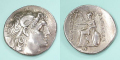 アレキサンダー大王(アレクサンドロス3世)の肖像が打ち出されています。側頭部にはエジプトの大神アモンを象徴する巻角が生やされ、亡き大王の神性を象徴しています。