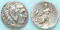 紀元前4世紀、アレキサンダー大王(アレクサンドロス3世)治世下の古代マケドニア王国で発行されたドラクマ銀貨。当時のドラクマ銀貨一枚は、兵士(歩兵)一人あたりの一日分の給与にあたる価値とされていました。